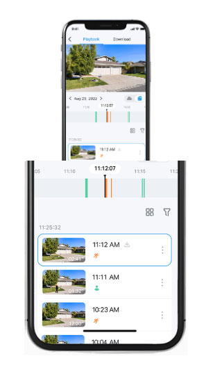 Nhanh chóng tìm và tải xuống những khoảnh khắc quan trọng bằng cách chọn loại sự kiện hoặc trượt trên dòng thời gian.