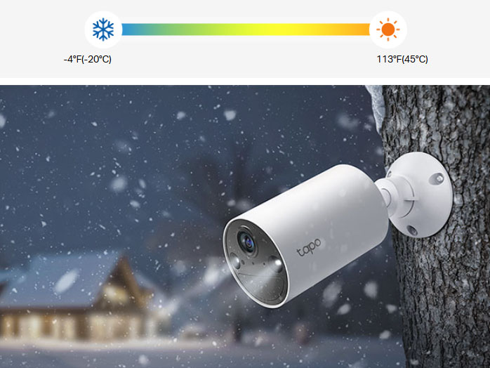 Tapo C410 đạt chuẩn IP65 chống bụi và chống nước, chịu được mưa, tuyết, bụi, ánh sáng mặt trời mạnh và các điều kiện thời tiết khắc nghiệt khác.