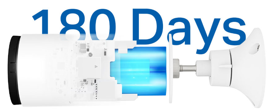 Với pin sạc tích hợp, Tapo C410 giúp giảm tần suất sạc lại, cung cấp đến 180 ngày hoạt động liên tục chỉ với một lần sạc.*