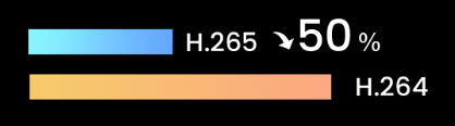 Công nghệ mã hóa H.265 giúp giảm 50% dung lượng video so với H.264, giúp tiết kiệm băng thông, trải nghiệm xem mượt mà hơn và nén lưu trữ dữ liệu hiệu quả hơn.