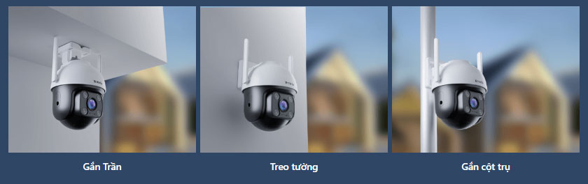 Được trang bị giá đỡ có thể điều chỉnh, camera có thể được gắn trên trần và tường bằng vít hoặc gắn trên cột bằng dây đeo.