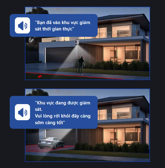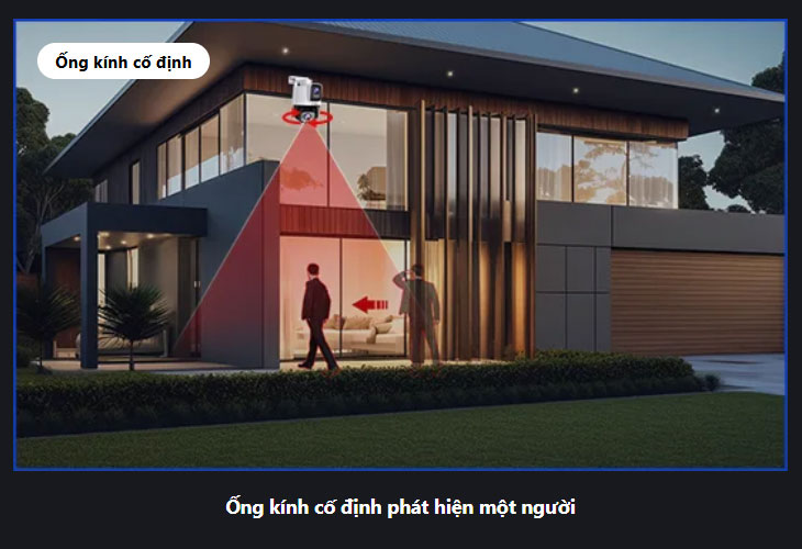 Thiết kế ống kính kép cho phép phát hiện chính xác sự vượt ranh giới và xâm nhập. Khi phát hiện sự hiện diện của người hoặc phương tiện trong khu vực được giám sát, camera sẽ nhanh chóng kích hoạt cả cảnh báo bằng âm thanh và ánh sáng, ngăn chặn hiệu quả những vị khách không mời.