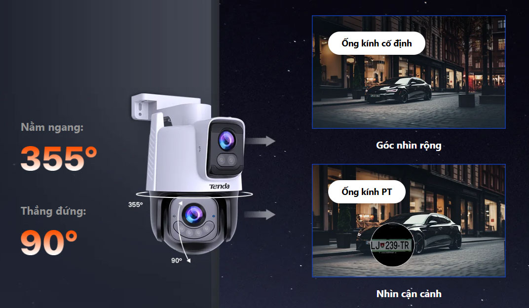 Với ống kính kép có khả năng nhìn ban đêm đầy đủ màu sắc, cung cấp hình ảnh sống động ngay cả vào ban đêm.