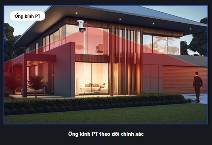 Thiết kế liên kết ống kính kép kết hợp với thuật toán theo dõi con người tiên tiến. Khi ống kính góc rộng cố định 4 mm phát hiện hoạt động của con người, ống kính PT có khả năng tele 6 mm sẽ tự động khóa vào đối tượng để ghi lại chuyển động của họ một cách tỉ mỉ.