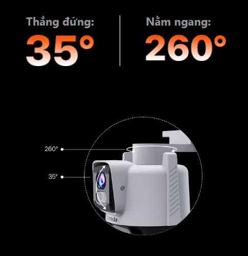Ống kính cố định hỗ trợ điều chỉnh thủ công theo chiều dọc lên đến 35°, trong khi giá đỡ cho phép điều chỉnh thủ công theo chiều ngang lên đến 260°, mang đến các tùy chọn lắp đặt linh hoạt cho hầu hết mọi vị trí.