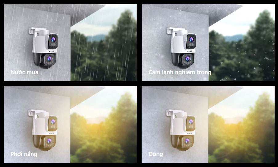 Ống kính kép được trang bị ống kính khẩu độ F1.6, đèn hồng ngoại và đèn rọi, được thiết kế để bảo vệ suốt đêm.