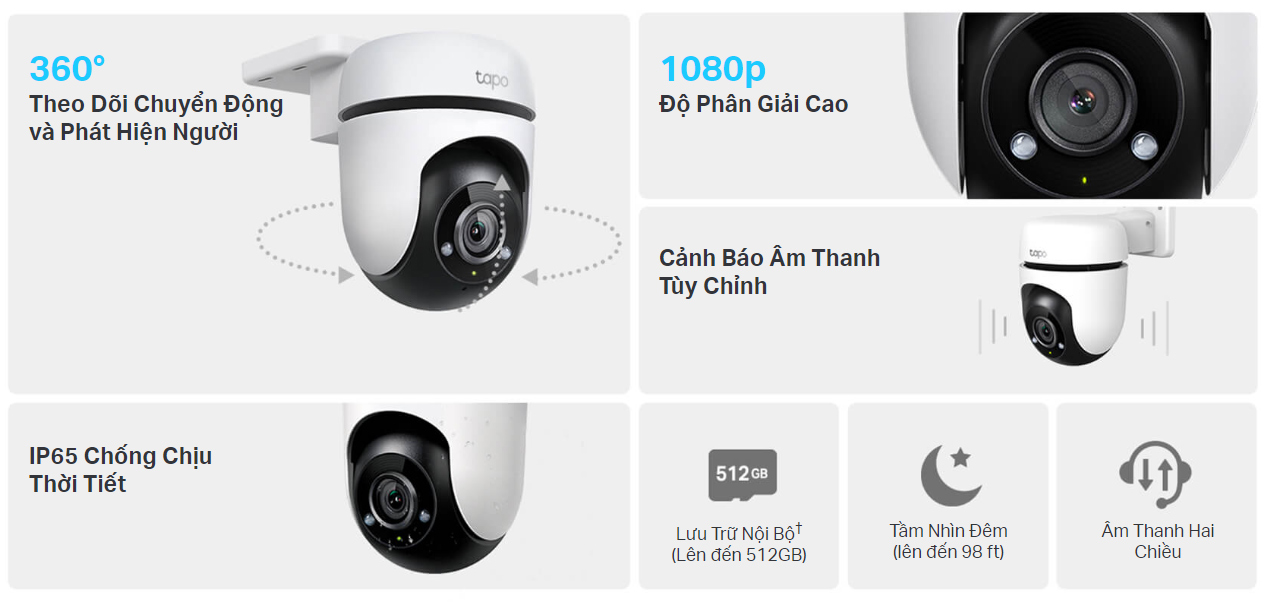 - Lựa Chọn Lưu Trữ Linh Hoạt - Lưu video ghi lại lên thẻ microSD cài đặt (lên đến 512 GB)†, hoặc sử dụng dịch vụ lưu trữ đám mây Tapo Care**.