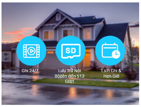 Ghi lại video 24/7 và tạo lịch trình ghi tùy chỉnh của bạn với thẻ micro SD đã cài đặt (lên đến 512 GB)†.
