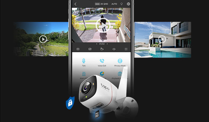 - Lưu Trữ Cục Bộ và Lưu Trữ Đám Mây - Lưu video đã ghi vào một thẻ microSD (lên đến 512 GB)†hoặc bằng cách sử dụng dịch vụ lưu trữ đám mây Tapo Care**.