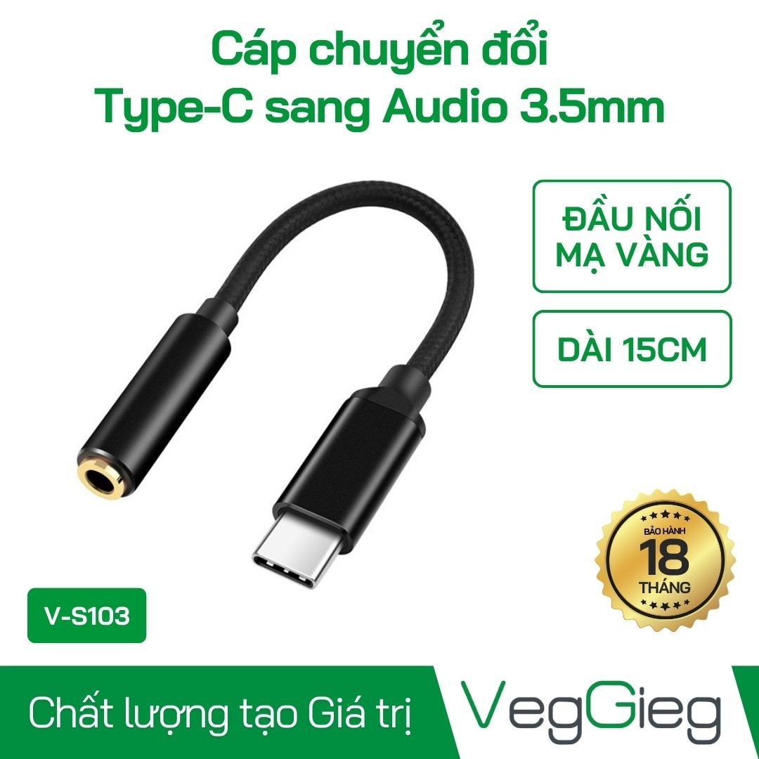 Cáp chuyển đổi VegGieg Type-C sang audio 3.5mm âm V-S103