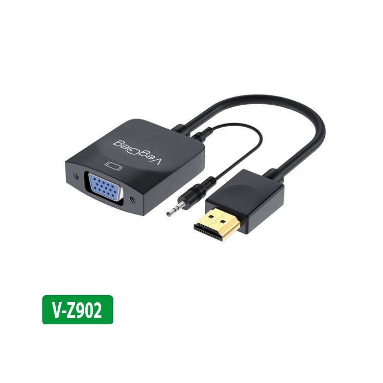 Cáp chuyển HDMI sang VGA VegGieg V-Z902 (có Audio), hỗ trợ FullHD 1080P@60Hz