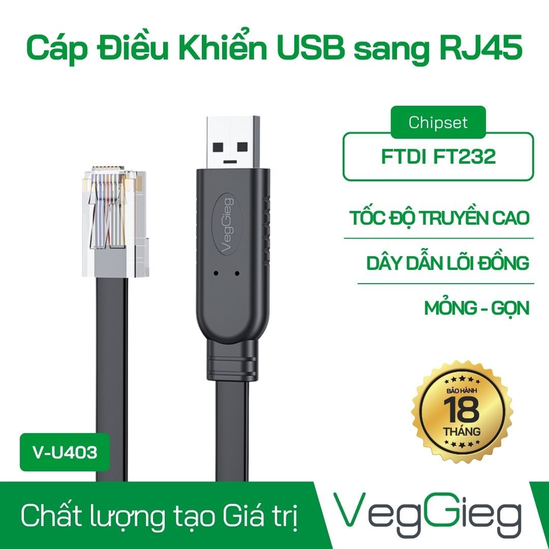 Cáp lập trình Console USB to RJ45 V-U403 Veggieg là lựa chọn lý tưởng cho các chuyên gia IT và người dùng cá nhân muốn duy trì và quản lý hệ thống mạng một cách hiệu quả và thuận tiện. Với sự tích hợp của chipset FTDI FT232 và các tính năng tiên tiến, sản phẩm này đảm bảo hiệu suất tối ưu trong mọi tình huống liên quan đến mạng máy tính.