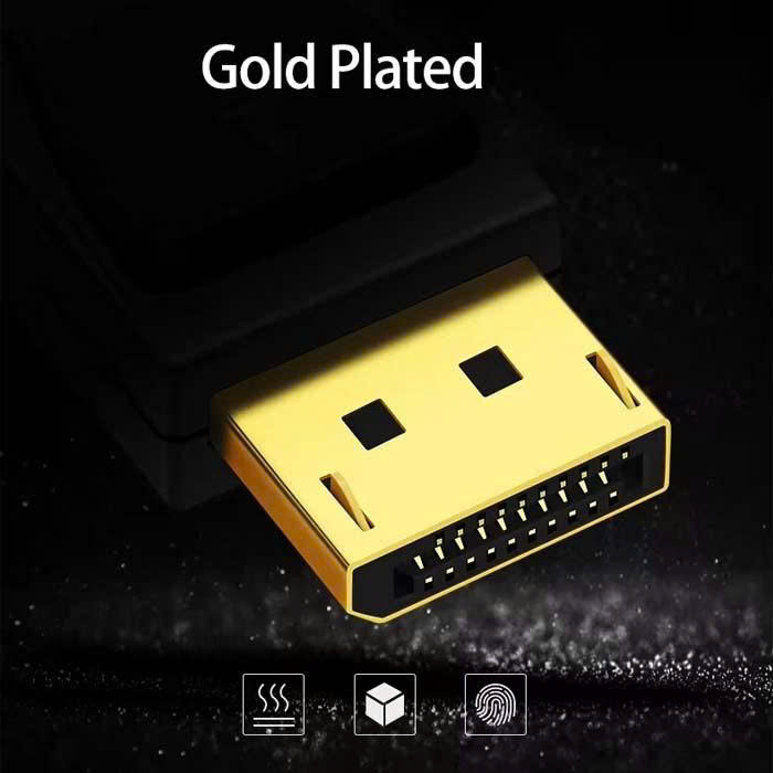 Cáp DisplayPort 1.2 4K VEGGIEG V-Z602 được trang bị cổng kết nối DisplayPort mạ vàng, tăng độ bền và khả năng tiếp xúc, đảm bảo truyền tải tín hiệu ổn định, chống oxi hóa. Cổng kết nối mạ vàng giúp tăng cường khả năng dẫn điện, hạn chế tình trạng tín hiệu bị nhiễu hoặc mất kết nối trong quá trình sử dụng.