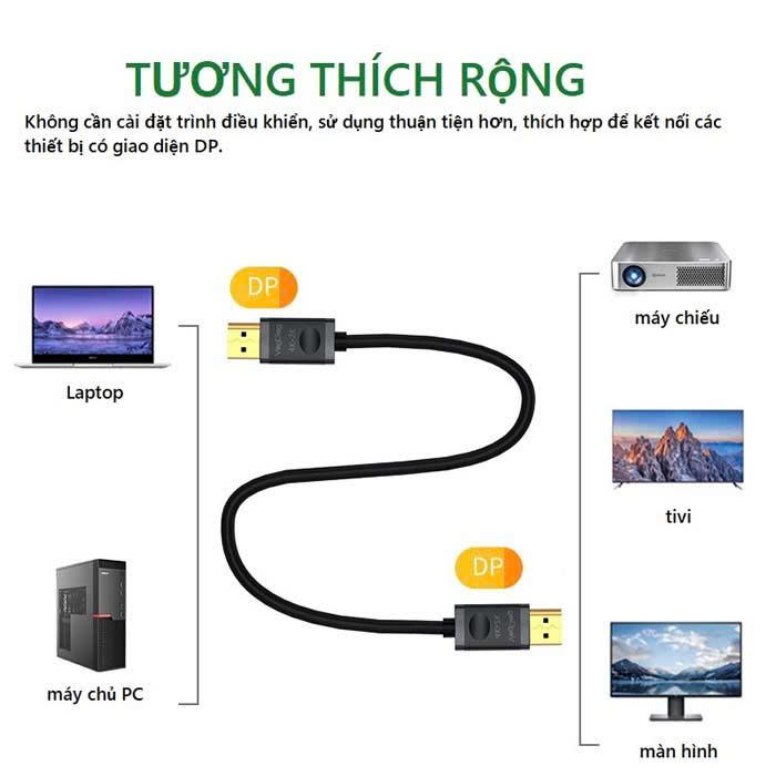 Ngoài ra, sản phẩm còn tương thích ngược với các loại cáp DisplayPort 1.1 thông thường như hỗ trợ các thiết bị như PC, laptop, màn hình, máy chiếu,... mang lại tốc độ truyền tải dữ liệu nhanh hơn, giúp tối ưu hóa trải nghiệm giải trí và làm việc.