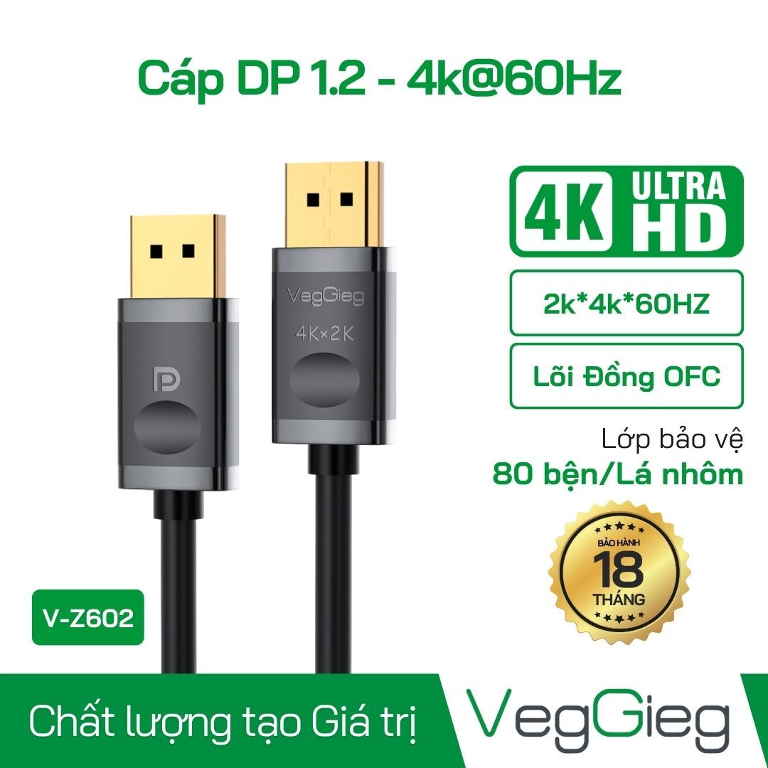 Cáp DisplayPort 1.2 4K VEGGIEG V-Z602: Trả nghiệm hình ảnh sắc nét với tốc độ truyền tải dữ liệu ấn tượng