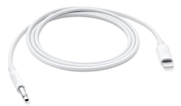 Cáp này có giắc âm thanh 3,5 mm ở một đầu và đầu nối Lightning ở đầu kia. Nó cho phép bạn kết nối thiết bị Apple của mình với hệ thống âm thanh nổi hoặc loa có đầu vào phụ trợ 3,5 mm để phát âm thanh.