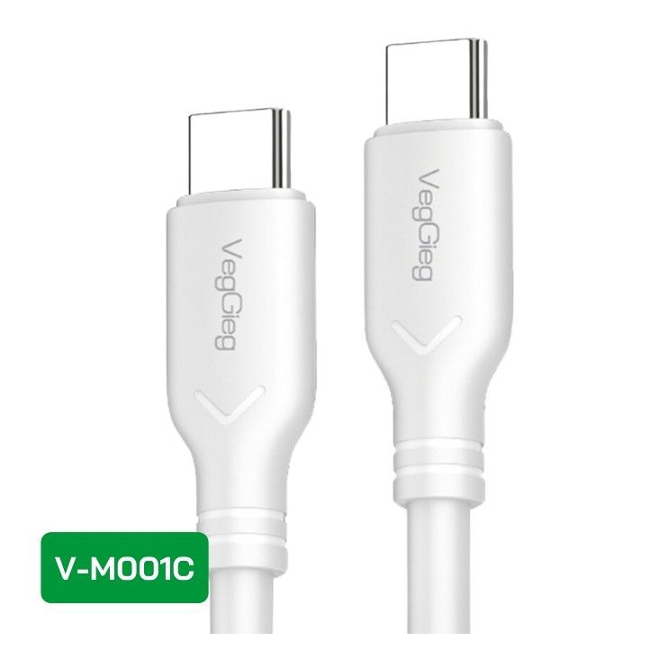 Cáp sạc nhanh USB-C to Type-C VegGieg V-M001C hỗ trợ sạc công suất tối đa 60W, truyền dữ liệu tốc độ 480Mbps, dài 1.2m, vỏ bọc PVC trắng bền đẹp.