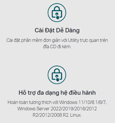 - Hỗ trợ đa dạng hệ điều hành - Hoàn toàn tương thích với Windows 11/10/8.1/8/7, Windows Server 2022/2019/2016/2012 R2/2012/2008 R2, Linux.‡