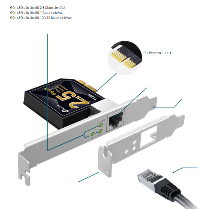 - Tốc độ cực nhanh - Ethernet 2.5 Gigabit giải phóng hiệu suất băng thông Multi-Gig cao nhất cho thiết bị của bạn. Dù là truyền dữ liệu cục bộ hay truy cập Internet, TX201 đều đáp ứng xuất sắc nhiệm vụ.†