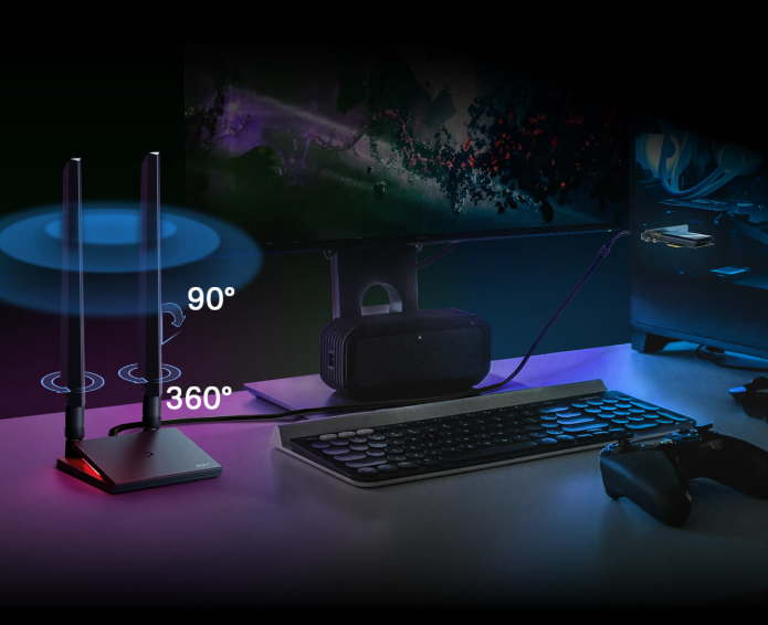 Archer TBE550E có hai ăng-ten đa hướng hiệu suất cao với đế từ tính. Đặt đế ăng-ten ở bất kỳ vị trí nào trên máy tính để bàn để tìm vị trí thu sóng tối ưu.