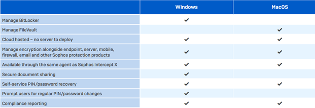 - Quản lý tập trung mã hóa toàn bộ ổ đĩa Windows BitLocker và macOS FileVault từ một bảng điều khiển duy nhất