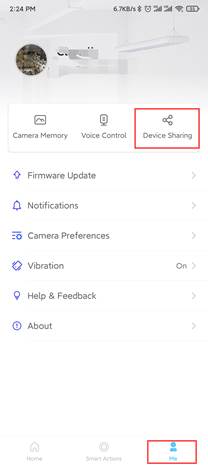 2. Trên trang chủ của riêng bạn, hãy nhấn và giữ thiết bị bạn muốn chia sẻ, sau đó nhấn Share. Hoặc trên trang Tôi (Me), nhấp Chia Sẻ Thiết Bị (Device Sharing) và chọn thiết bị bạn muốn chia sẻ.