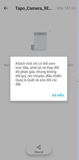 *Lưu ý: Đối với camera Tapo, người được mời giới hạn quyền để kiểm soát camera.
