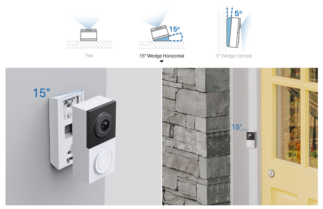 - Vị trí linh hoạt, chế độ xem linh hoạt: Các lựa chọn nêm khác nhau cho phép người dùng làm cho chuông cửa phù hợp với nhiều tình huống đặt hơn. Người dùng cũng có thể sử dụng nêm để điều chỉnh chế độ xem.