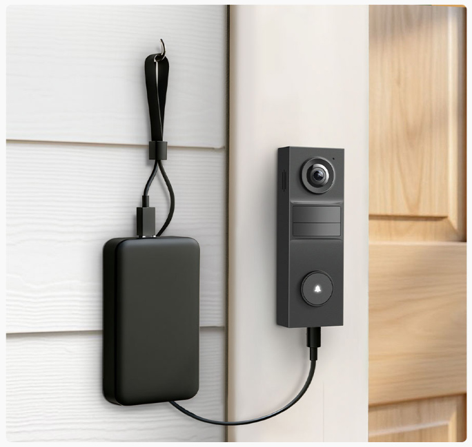 Sạc trực tiếp Tapo Doorbell Mini qua cổng USB-C ở phía dưới bằng pin dự phòng – không cần tháo rời thiết bị.