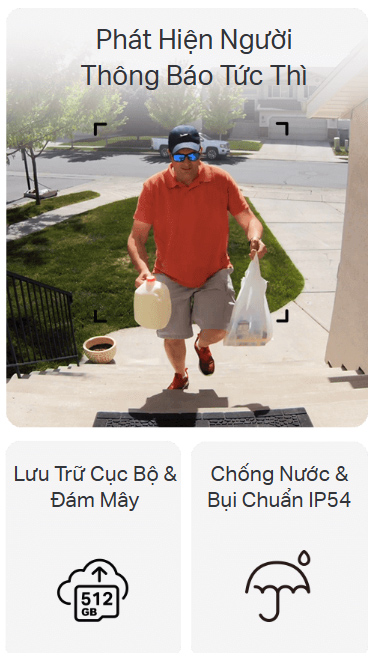 Yên tâm hơn với thông báo thông minh, theo thời gian thực nhờ AI phát hiện và cảnh báo khi có người ở cửa nhà bạn – không cần đăng ký dịch vụ.