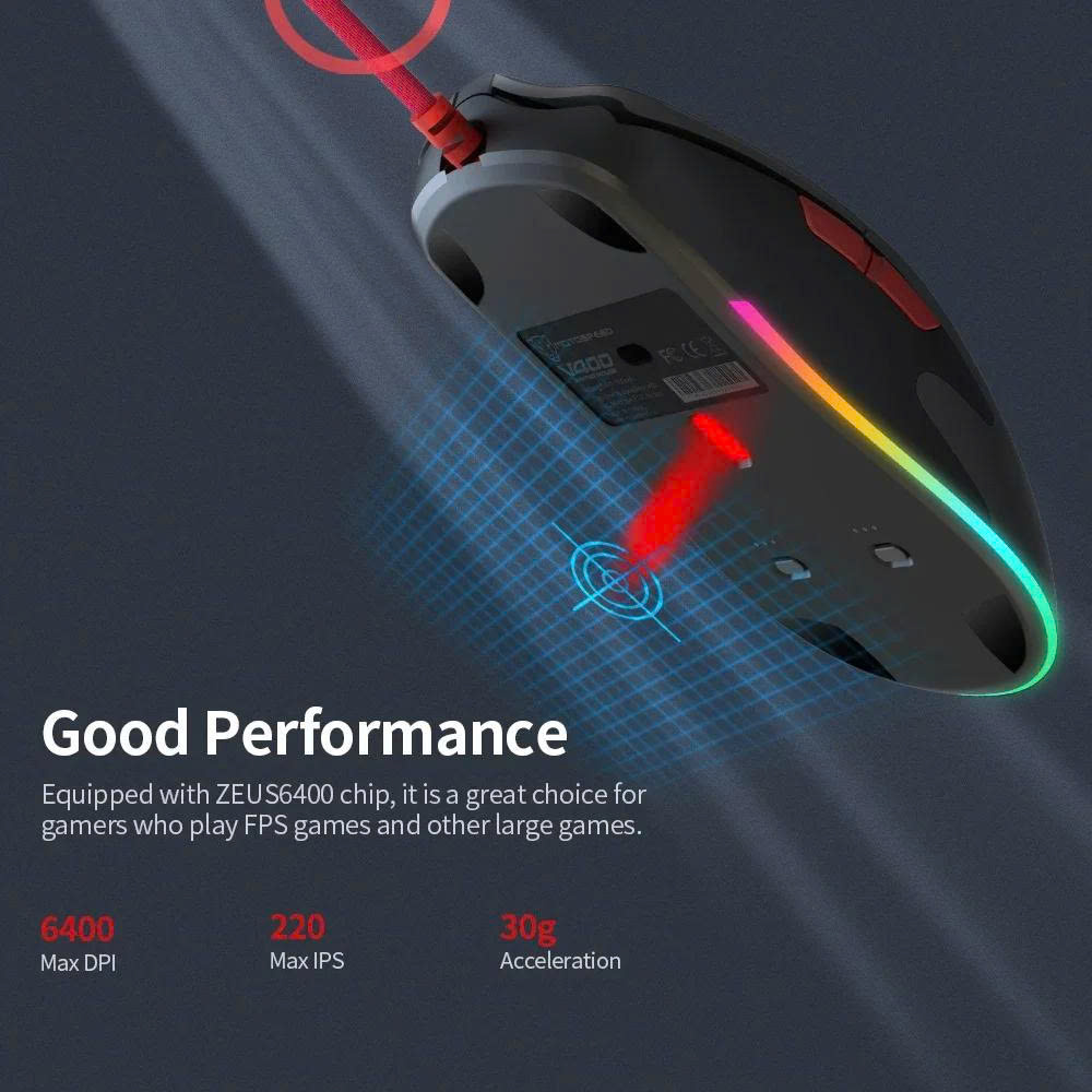 Chuột Motospeed với cảm biến quang học ZEUS 6400 giảm độ trễ xuống mức thấp nhất cho bạn bắt kịp đối thủ trên chiến trường ảo. Độ nhạy có thể điều chỉnh tới 6400 DPI, tối đa sự chính xác trong từng thao tác nhỏ trên màn ảnh. Chuột gaming Motospeed V400 có gia tốc 30g giúp duy trì sự ổn định trong quá trình thao tác.