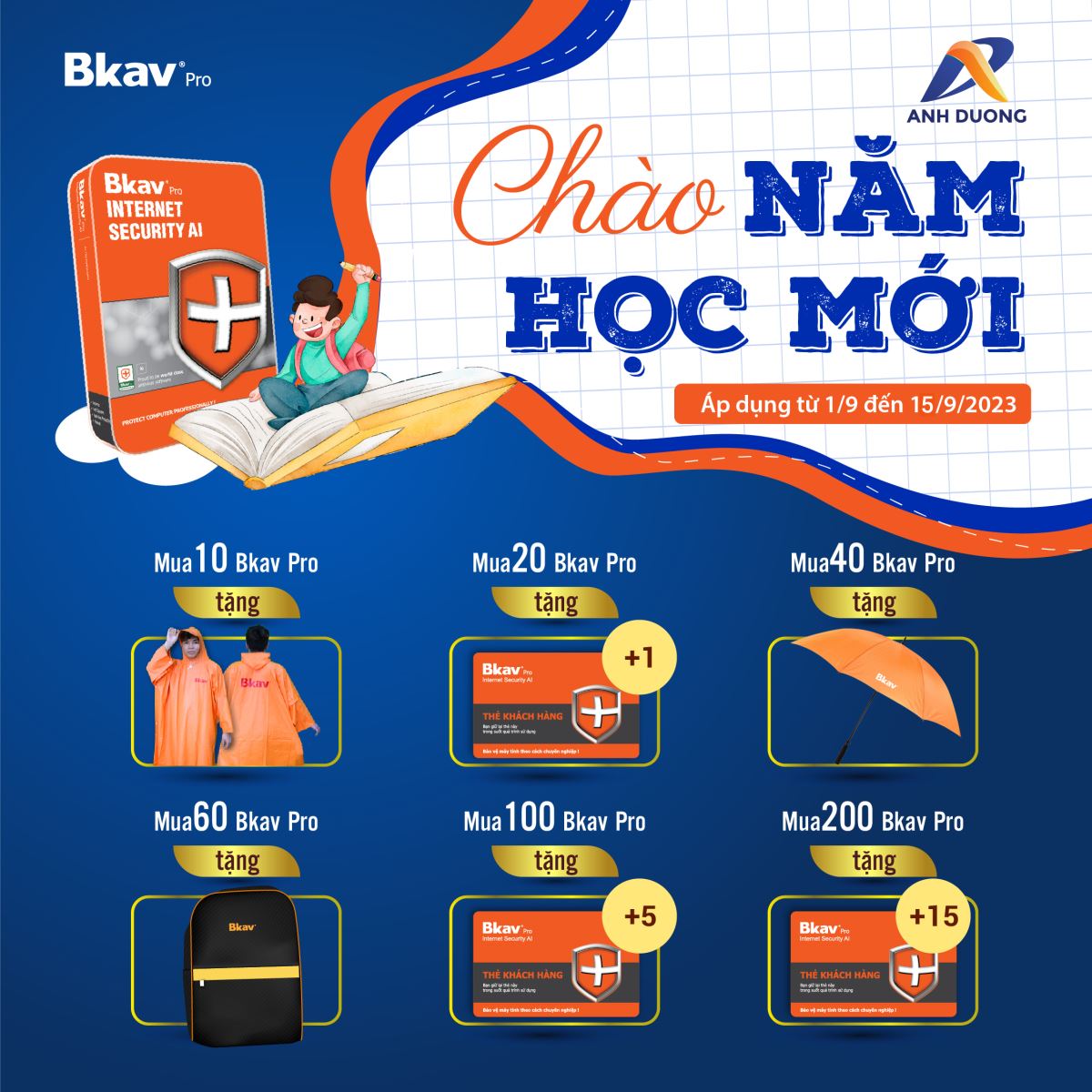 Ánh Dương - NPP BKAV miền Nam cùng công ty Bkav thực hiện chương trình khuyến mãi chào đón năm học mới 2023 dành cho quý khách hàng đại lý với nhiều phần quà hấp dẫn: