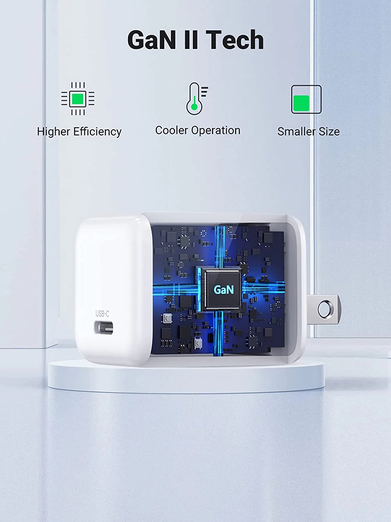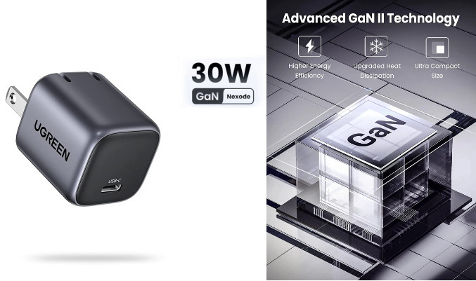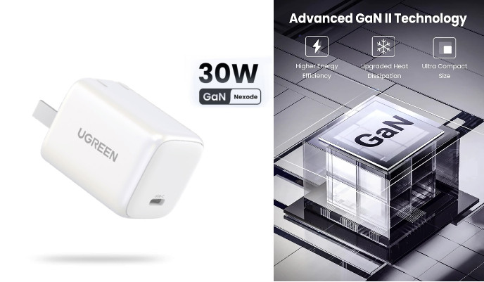 Củ sạc nhanh 30W GaN 1 cổng USB Type-C UGREEN với hai màu xám và trắng được áp dụng công nghệ tiên tiến GaN cho khả năng dẫn nhiệt cao hơn, giúp cải thiện tốc độ và hiệu quả sạc. Kích thước của bộ sạc được giảm và toả nhiệt ít hơn.