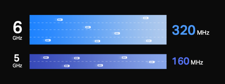 Wi-Fi 7 khai thác tối đa tiềm năng của băng tần 6 GHz để tăng gấp đôi băng thông so với thế hệ trước. Việc mở rộng băng thông kênh lên 320 MHz cũng cho phép nhiều luồng truyền đồng thời hơn với tốc độ nhanh nhất có thể.