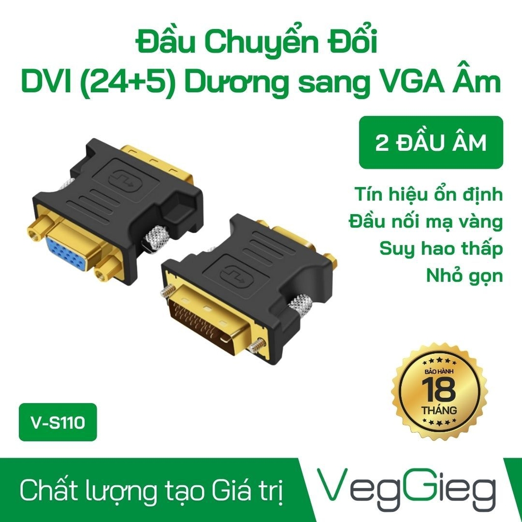 Đầu Chuyển Đổi DVI (24+5) Dương Sang VGA Âm VegGieg V-S110 giúp bạn dễ dàng kết nối các thiết bị hiện đại với cổng DVI tới các thiết bị cũ hơn chỉ hỗ trợ cổng VGA, mang lại sự tiện lợi và hiệu quả trong công việc mà vẫn đảm bảo chất lượng hiển thị.