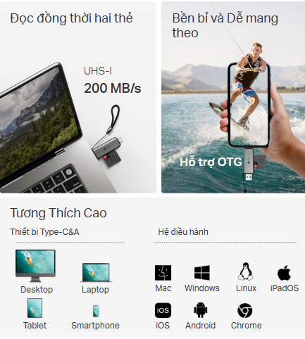Đầu đọc thẻ USB 3.0 Type-C&A dành cho thẻ SD và microSD 3.0