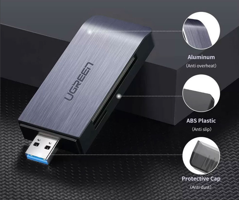 Đầu đọc thẻ Ugreen 50541 Có thiết kế nhỏ gọn, đẹp mắt với chất liệu nhôm cao cấp. Bạn có thể tiện mang theo bên mình mọi lúc, mọi nơi.