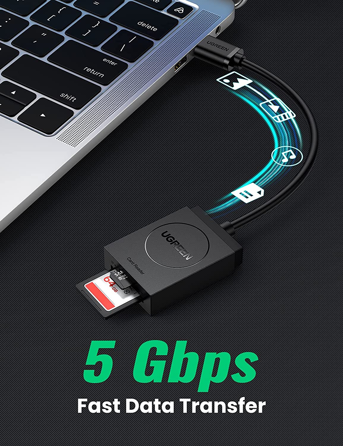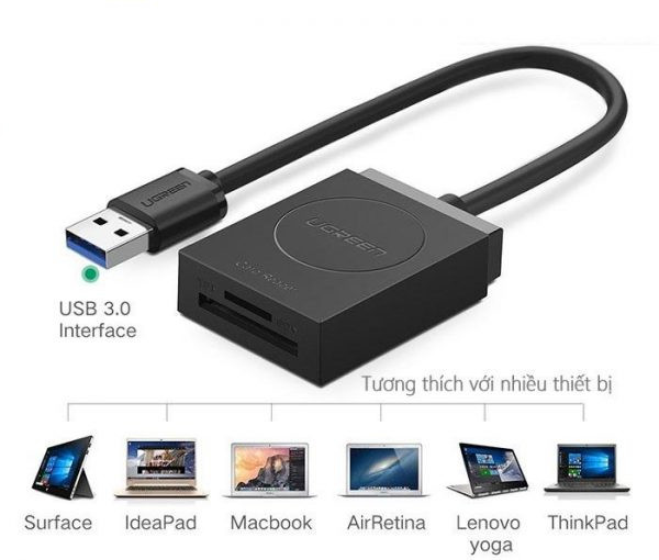 Đầu đọc thẻ nhớ USB 3.0 Ugreen 20250 là thiết bị nhỏ gọn giúp bạn thuận tiện để truy cập vào các thẻ nhớ đa định dạng như: SDXC, SDHC, SD, Micro SDXC, Micro SDHC, Micro SD. Thật dễ dàng chuyển các tệp tin từ thẻ nhớ flash của bạn vào máy tính PC, MAC, Laptop ... Tốc độ truy cập lên đến 5 Gbps qua cáp USB 3.0