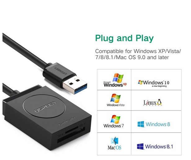 Đầu đọc thẻ Ugreen 20250 thiết kế nhỏ gọn, kiểu dáng sang trọng. Cắm là sử dụng được luôn, không phải cài đặt phần mềm.