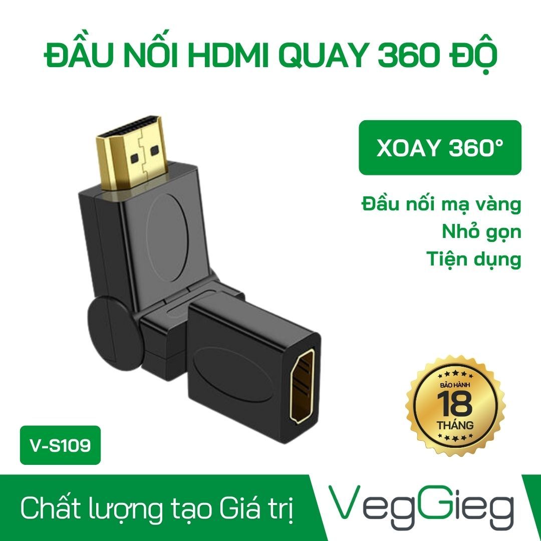 Đầu Nối HDMI Quay 360 Độ VegGieg V-S109 giúp bạn dễ dàng kết nối các thiết bị trong không gian hạn chế mà vẫn đảm bảo chất lượng truyền tải tín hiệu. Thiết kế nhỏ gọn và khả năng xoay linh hoạt giúp tối ưu hóa không gian và tiện dụng trong việc sắp xếp các thiết bị.