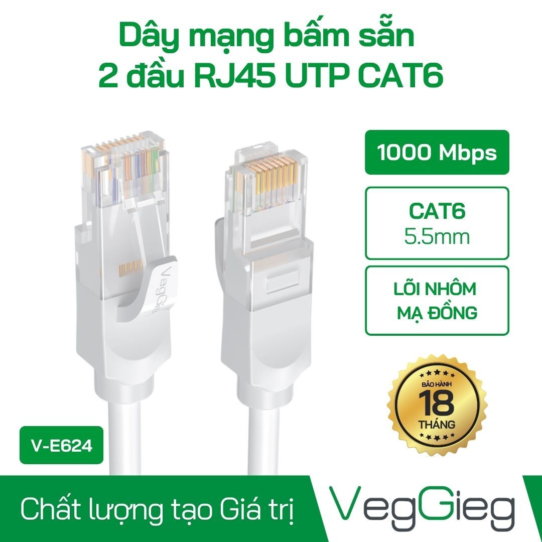 - Kết Nối Máy Tính, Router, Switch: Dây mạng VegGieg V-E624 là lựa chọn lý tưởng để kết nối các thiết bị mạng trong văn phòng hoặc gia đình, đảm bảo kết nối mạng luôn ổn định và nhanh chóng.
