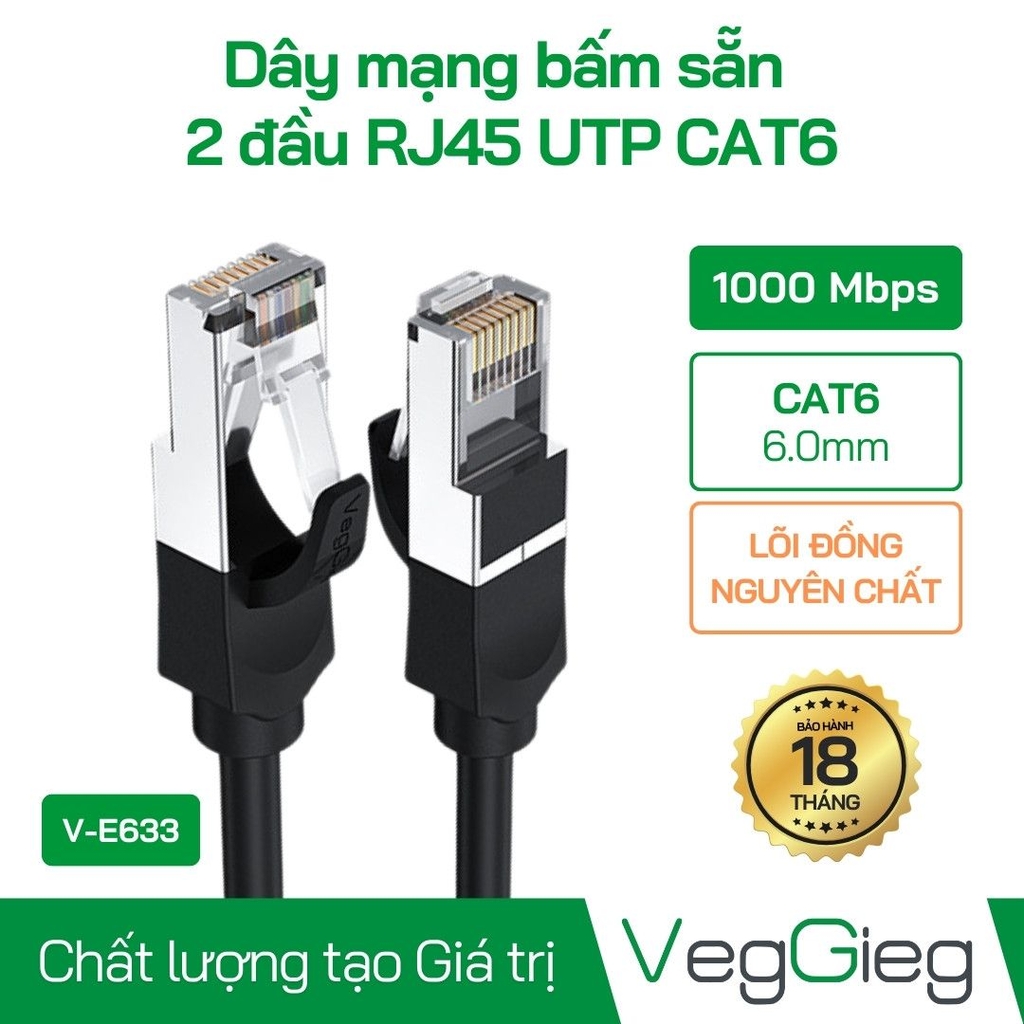 - Hiệu Suất Cao: Đáp ứng mọi nhu cầu từ công việc đến giải trí, cáp mạng VegGieg VE-633 giúp người dùng tận hưởng tốc độ mạng nhanh chóng và ổn định, không còn lo lắng về gián đoạn kết nối.