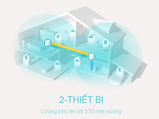 Một Mạng Thống Nhất: Nhiều thiết bị tạo thành một mạng toàn gia đình, tự động chọn kết nối tốt nhất khi bạn di chuyển xung quanh nhà.