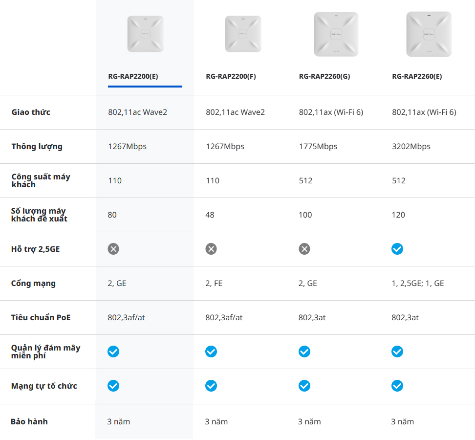 Thiết bị mạng Wifi RUIJIE RG-RAP2260 (E) (ốp trần hoặc gắn tường)