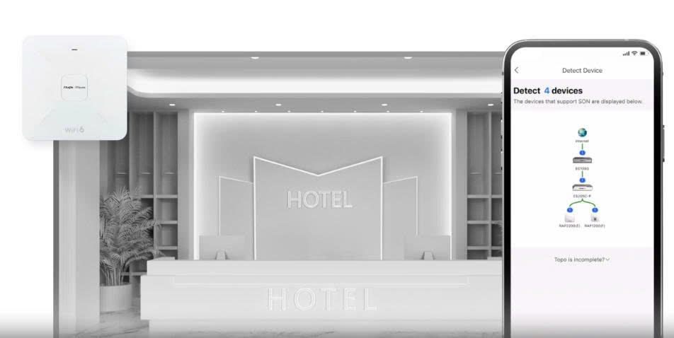 Công nghệ SON (Mạng tự tổ chức) giúp thiết lập toàn bộ mạng Wi-Fi bằng ứng dụng Ruijie Cloud một cách dễ dàng.