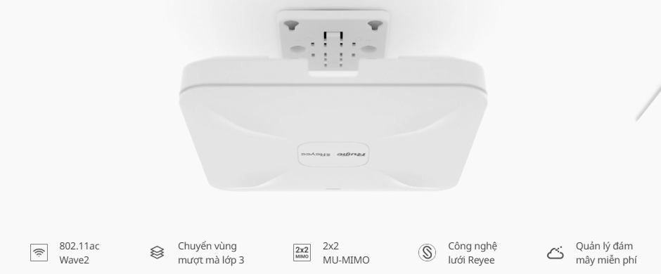 802.11ac Wave2 | Chuyển vùng mượt mà lớp 3 | 2x2 MU-MIMO | Công nghệ lưới Reyee | Quản lý miễn phí trên đám mây