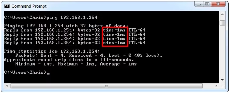 Khi chúng tôi ping bộ định tuyến cục bộ của mình, chúng tôi thấy độ trễ là 1ms. Bộ định tuyến của chúng tôi ở gần và chúng tôi có thể kết nối trực tiếp mà không cần thông qua các bộ định tuyến khác.