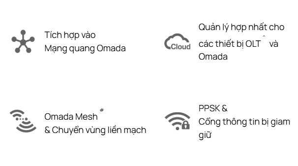 - Chức năng nâng cao: Quản lý hợp nhất cho các thiết bị OLT ^ và Omada, Omada Mesh # và Chuyển vùng liền mạch 802.11k/v/r