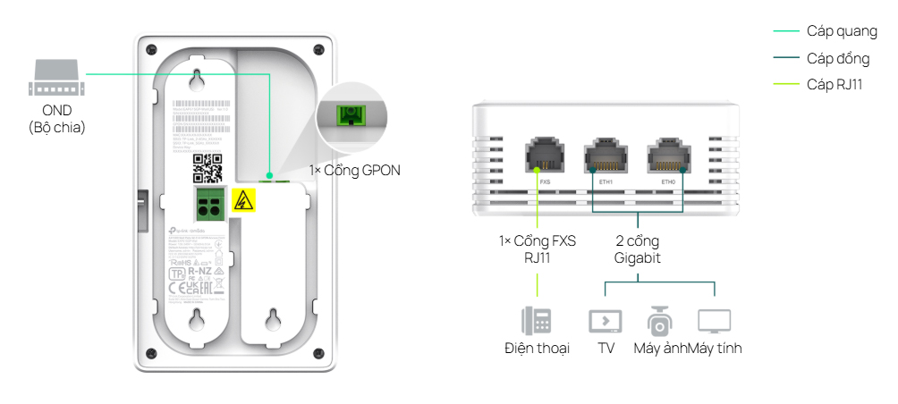 - 1 cổng GPON cho khả năng truy cập tốc độ cao và phạm vi cực xa