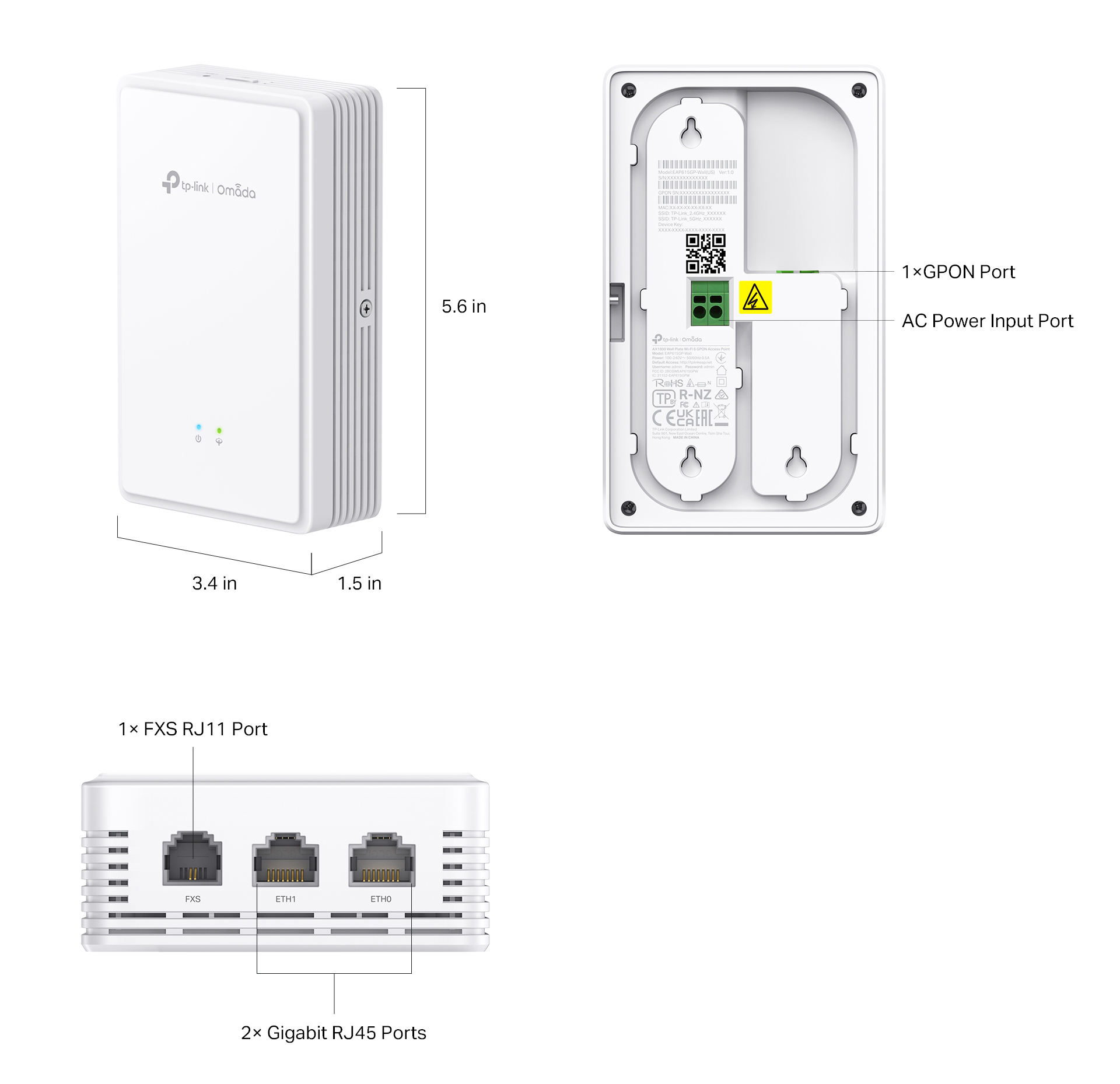 Omada AX1800 Wi-Fi 6 Wall Plate GPON Access Point